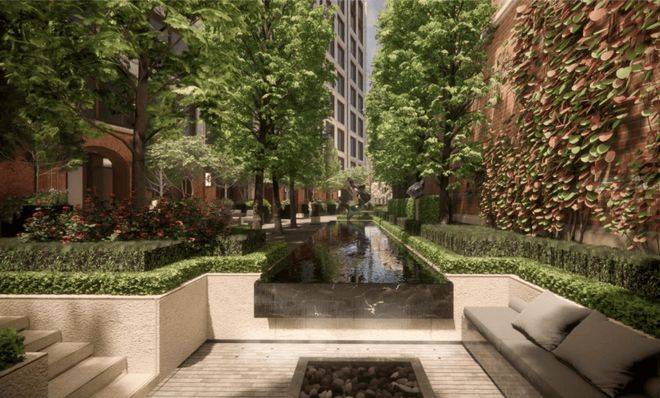 秩序与节奏是景观设计的基本表现形式,突显园林之美的同时也具备实用性。项目特别设计由宽入窄的线型园林,充分利用了每一寸空间,从开阔的弄堂巷道,到专属的私家庭院,也对应着从开放到私密的归家心理变化。