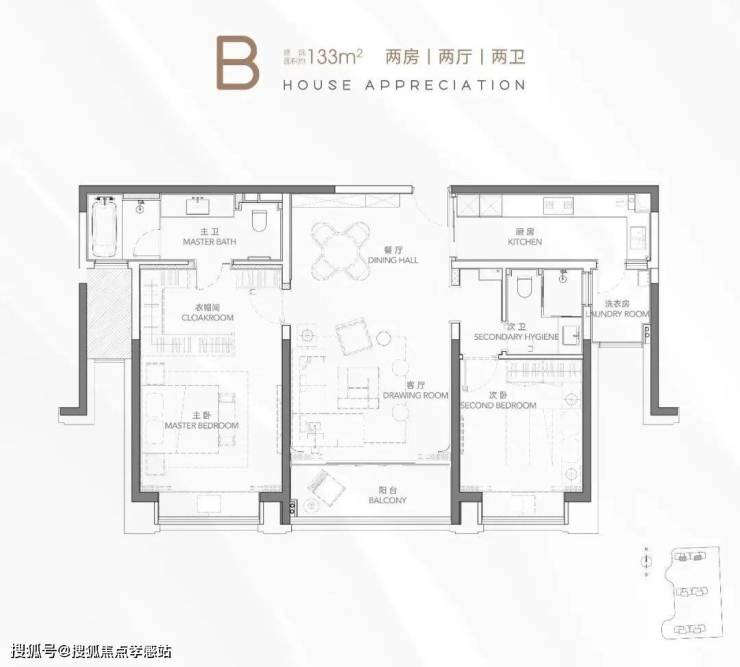 主力户型:2房133㎡、2+1房135㎡、3房150-154㎡