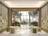 来到致敬金贝尔美术馆打造的 「天穹光廊」,地面由蓝翡翠+汉白玉+温德姆灰3种奢石精细切割拼花而成,长廊尽头景墙精选龙纹绿奢石,中轴对称的庄严格局,仿佛漫步博物馆。