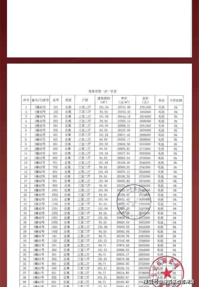 05.项目一房一价表