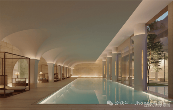 提到“顶奢豪宅”,很多人会想到汤臣一品,而外滩瑞府的泛会所,正是由汤臣一品的设计师渡边智昭倾心设计。他大胆突破传统,不仅打造了独立的“室内外双幕水剧场”,更创造性地将社交功能分散于四栋塔楼之下,规划了温莎廊吧、公啡花房、子恺乐园与Gym CLUB四大主题泛会所。