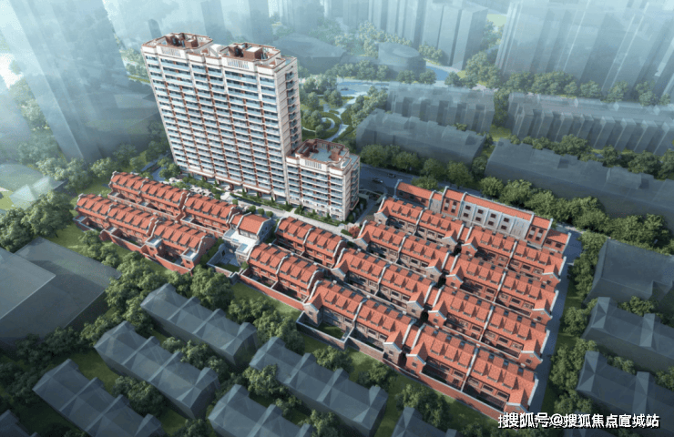 建筑风格:由日清设计创始人宋照青、朗道设计创始人叶翀岭、梁志天大师设计团队联袂打造。高层采用大面积玻璃立面结合古铜棕铝板,曲面转角弧形、古典竖线饰面,灵感源自武康大楼。别墅遵循 “修旧如旧、以存其真” 理念,保留清水红砖山墙、孟莎式折坡屋顶等石库门元素。