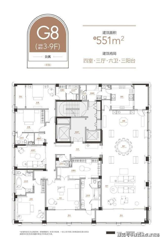 建筑面积:洋房建面约 209-641㎡,叠加别墅建面约 242-353㎡,合院别墅建面约 850-1200㎡。