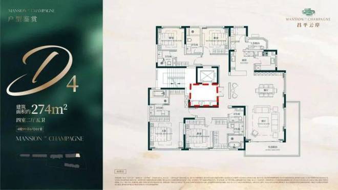 建面约274㎡4房2厅5卫户型昌平•云岸售楼处电话:400-8787-740