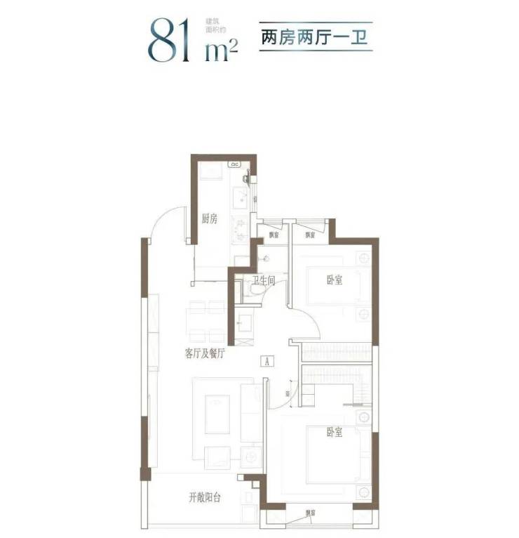 建面约81㎡ 2房2厅1卫▼