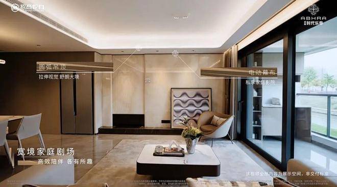全屋采用弧形吊顶,巧妙地打破了传统直线设计的单调,招商时代乐章售楼处电话 400-8787-740 ✅✅以流畅的曲线勾勒出空间的柔和与灵动。