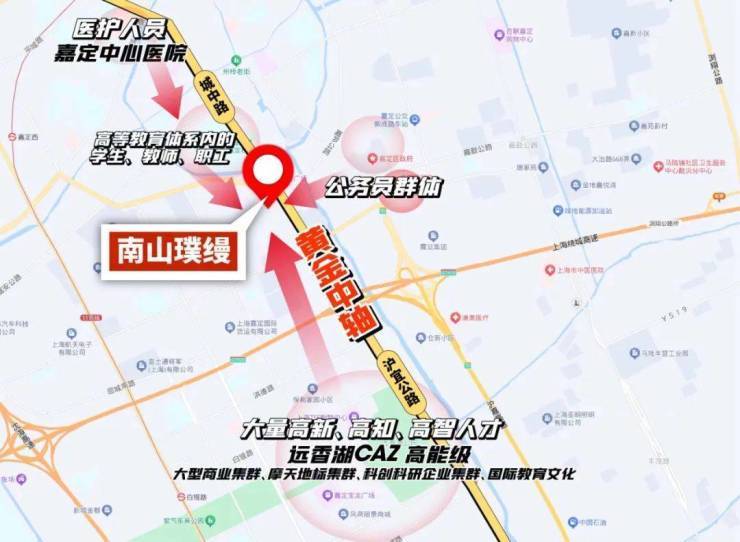 而在嘉定,主轴只有一条:城中路-沪宜公路-嘉闵高架组成的烫金主轴。