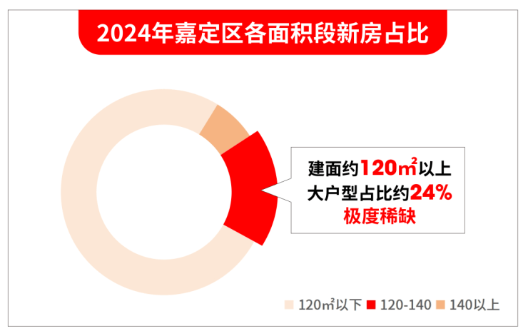 整个嘉定目前还是以百平米左右3房为主力供应段,建面约120㎡以上的产品去年仅占比约24%,极度稀缺。