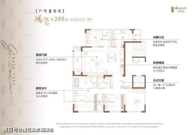 方厅近50㎡,3套房+书房设计,给三代同堂的家庭生活真正的体面。动区、静区互补干扰,主卧与次卧,皆有私属独卫空间。