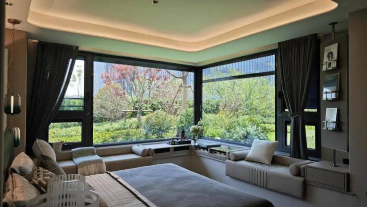 巨幕“曲面屏”阳台,搭配落地玻璃窗,将室外绿色美景尽收眼底,几乎实现南向阳台“墙体消失术”!
