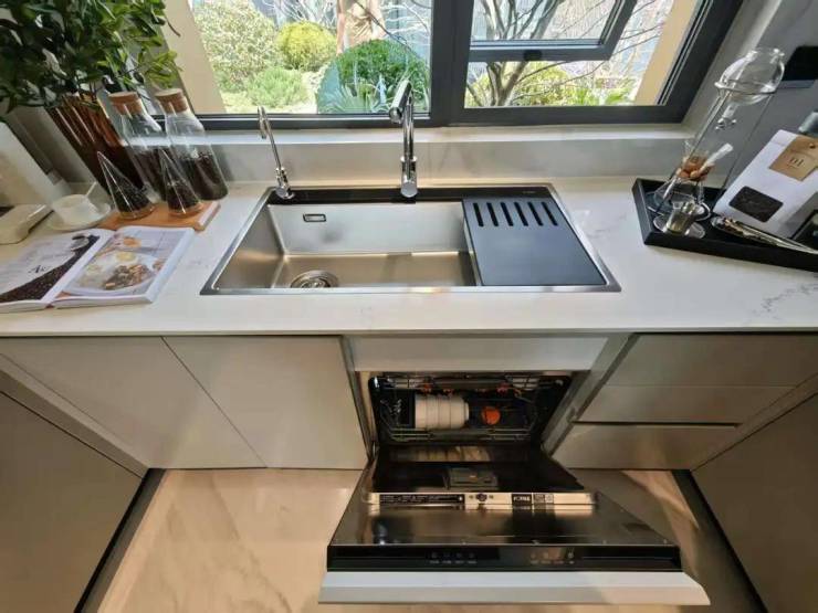 水槽洗碗机一体化!水槽下方不再浪费,而是安装16套大容量洗碗机,节省0.36平方收纳空间!