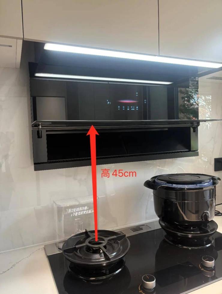 超薄近吸科技,油烟机的进风口距台面非常近,高度仅45cm,处于黄金控烟区下沿,油烟刚产生就能迅速被捕捉!