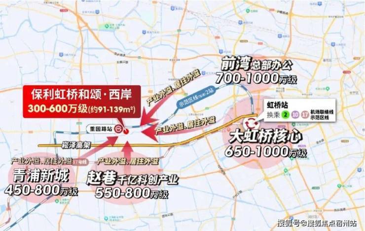 由此可见, 示范区线沿线连接着华为、前湾、大虹桥、临空、中山公园、市中心、张江、华泾等一众超强产业区。保利虹桥和颂·西岸凭借地铁房的优势及价格红利,必将成为这些产业区人才置业的热门之选。