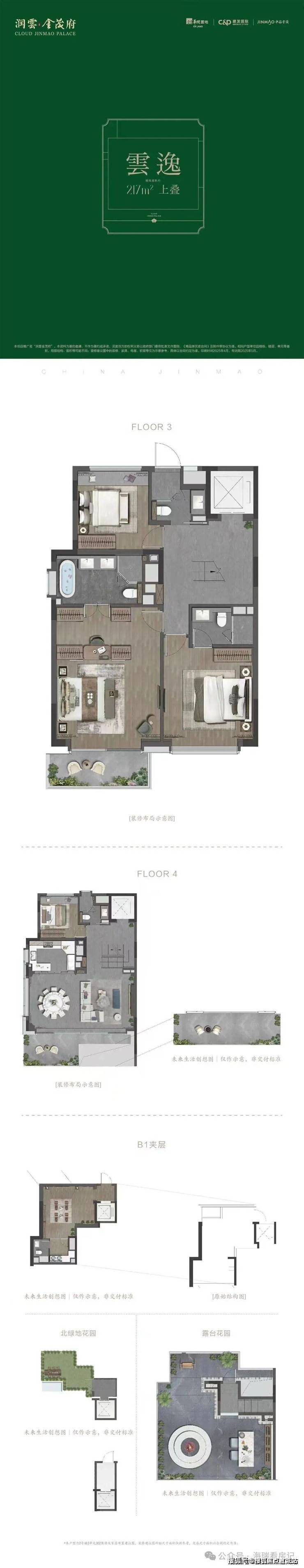 主力户型:为建面170-217㎡的4居室,涵盖170㎡4室2厅3卫、190㎡4室2厅3卫、200㎡4室2厅4卫、217㎡4室2厅4卫等户型。上叠带地下室夹层和绿地花园,下叠配有约5.8米挑高地下室和私家庭院,所有户型均为全明设计,且预留充足收纳空间。