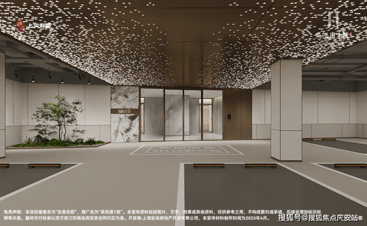 当多数地库还停留在满足基础功能性阶段,吴淞道1號已将车库升维成艺术归家剧场。相比传统车库窄车道与压抑管线外露设计,项目以宽阔车道搭配格栅吊顶,利落线条消解逼仄感,行车视野更开阔,会车更轻松从容。