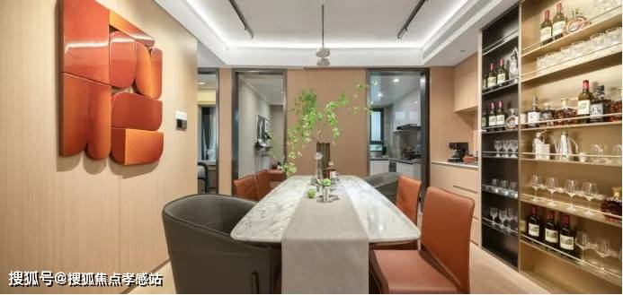 · 餐边柜空间预留,灵动空间收纳设计让生活充满无限可能,可以是太太的咖啡水吧区,也可以是先生的品酒区;