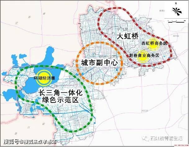 占位:一城两翼核心区,发展升阶3.0,上海规划“五大新城”之一,大虹桥“经济黄金轴线”上,创新研发、商务贸易、旅游休闲区。
