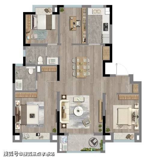 · 该户型三房两厅两卫,飞机户型设计,功能性强,可满足大部分家庭居住空间需求;