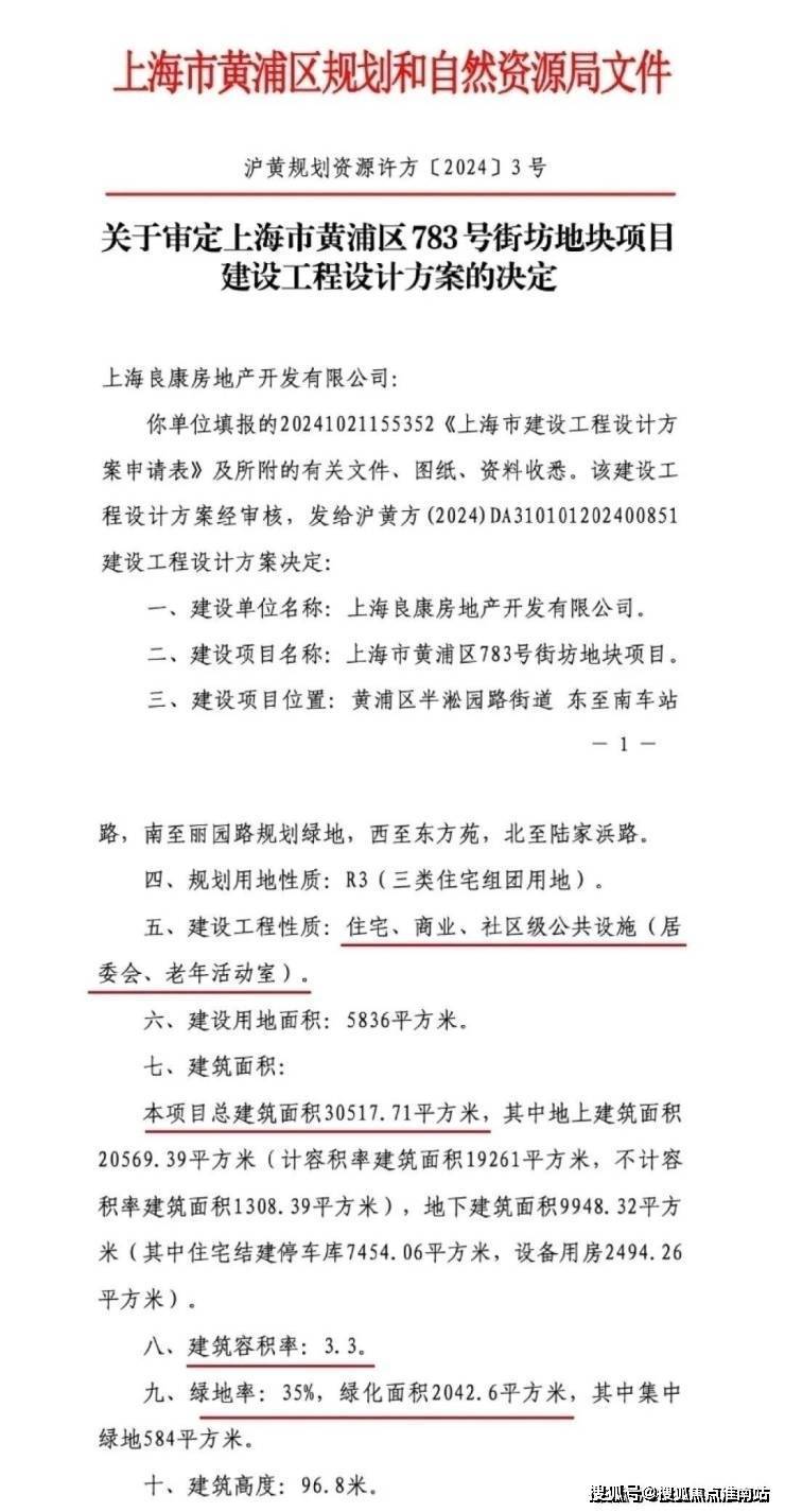 根据规划显示,783号街坊地块项目,总建筑面积30517.71㎡,容积率为3.3,绿化率为35%,绿化面积2042.6㎡.