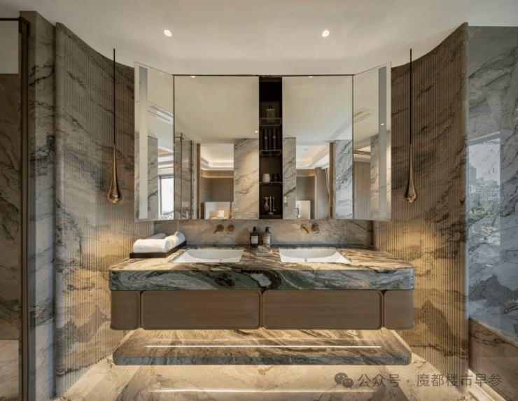 甚至打造了上海首个植物泳池,皮革面绿色石材替代冰冷瓷砖,光影成“树影斑驳”秘境,是闺蜜拍照与私人派对的理想之地。