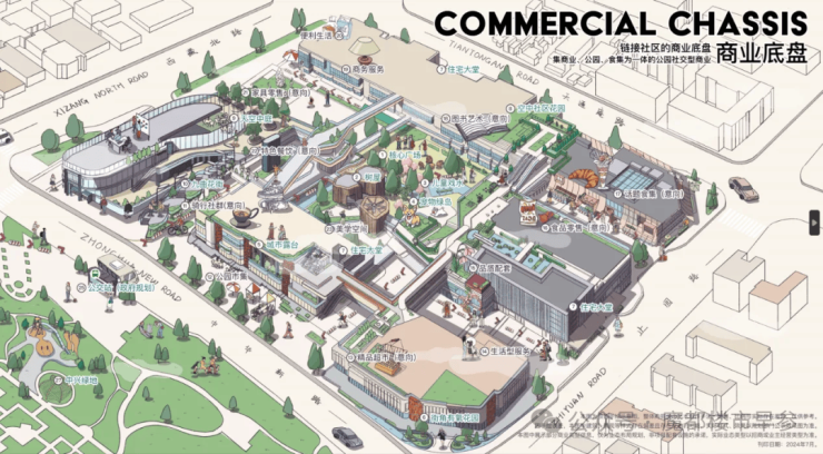 另外在社区的东南角和西侧,将通过街区设计与潮流商业的招募,打造类似上生新所般的时尚街区。内部预计将引入骑行、亲子、户外、宠物为主的社交型主题商业。