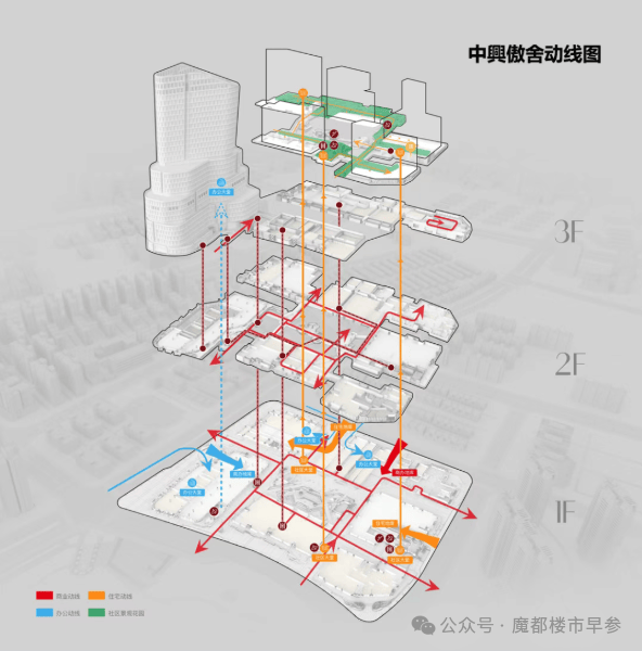 虽然商业和住宅垂直融合,但住宅动线和商业动线是永不相交的“双轨制”模式。