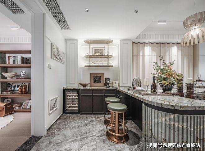更好更奢的归家门庭,嘉佩乐酒店风格,海派元素充满空间的每一个角落,地面的复古花纹,金属镂空装饰墙,普拉达绿的奢石点缀,仿佛穿越到了摩登时代!