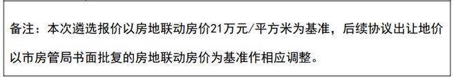 根据评分遴选相关事项,本次遴选报价以房地联动价21万元/㎡为基准