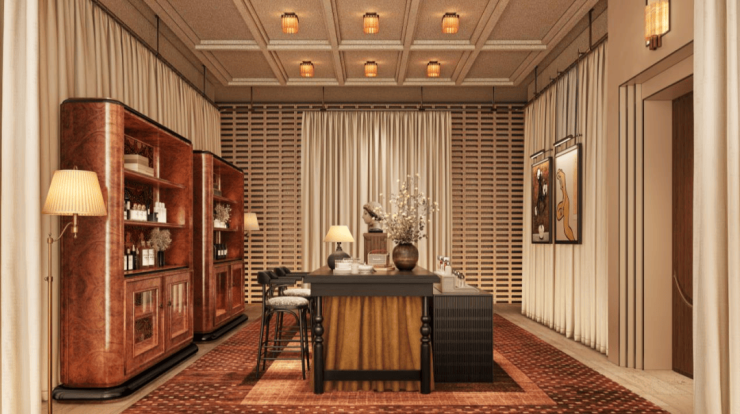 私宴红酒区,与中粮长城桑干酒庄合作,将其屡次亮相重大场合的佳酿引入北外滩壹号。为业主提供私密的高端宴请场所,适用于家庭聚会与商务社交。