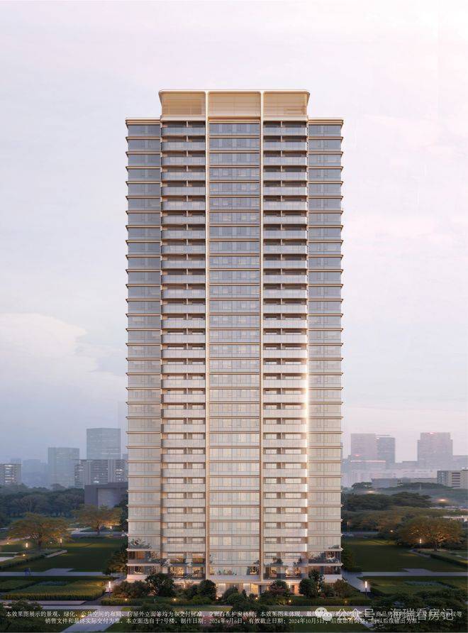 再仔细看细节,顶部香槟金色格栅塔冠以及壁柱采用香槟金和白色色调,将海派与现代之美生动演绎。基座更是采用大面积石材搭配艺术玻璃及古铜色金属窗框,辅以奢石、艺术等点缀,打造极致归家体验。如此颇具辨识度的外立面,未来势必将刷新区域天际线,形成徐汇一道亮丽的风景。
