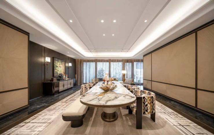 其一, 270°转角弧形飘窗 的创新,超绝的窗墙比造就空中全景舱。弧面玻璃都是三玻两腔,造价高昂。其二,在建筑层间用 弯弧铝板 来勾勒线条,工艺复杂、成本昂贵,楼体 铝板也是弧面设计, 并且整体大面运用滚涂工艺,色彩鲜艳、防腐性能好、耐气候性也更好,豪宅气质更加历久弥新!