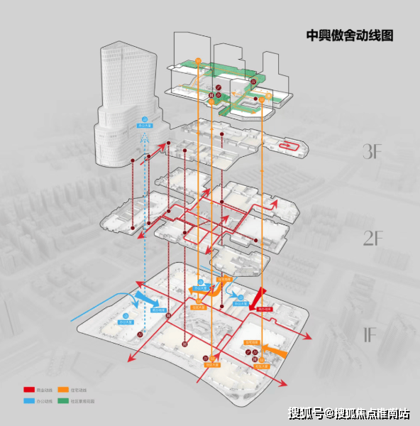 虽然商业和住宅垂直融合,但住宅动线和商业动线是永不相交的“双轨制”模式。