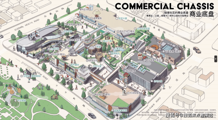 另外在社区的东南角和西侧,将通过街区设计与潮流商业的招募,打造类似上生新所般的时尚街区。内部预计将引入骑行、亲子、户外、宠物为主的社交型主题商业。