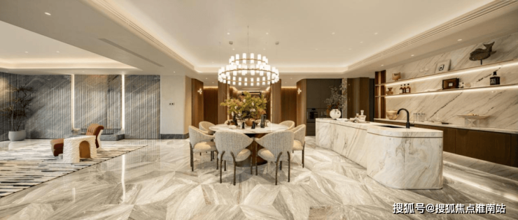 豪宅中,会所+泳池已成为市场标配,但是中兴傲舍却将之与艺术融合,把艺术变成了生活的一部分。14.5米超高挑空的归家大堂,搭配三大园景礼序和七重风雨连廊,从进门就仪式感爆棚。