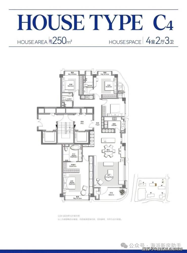 此外,客餐厅一体化、约270°弧形观景阳台配全卧飘窗皆为标配。