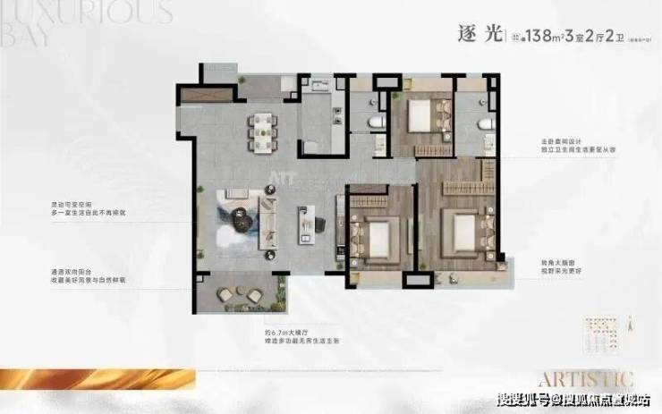 89平户型比较有看点,实现三开间朝南+约5.5米宽厅,外接景观阳台,整体看下来有100平是空间感,其他几个户型得房率表现不错,属于比较实惠型产品,适合追求性价比的客户。