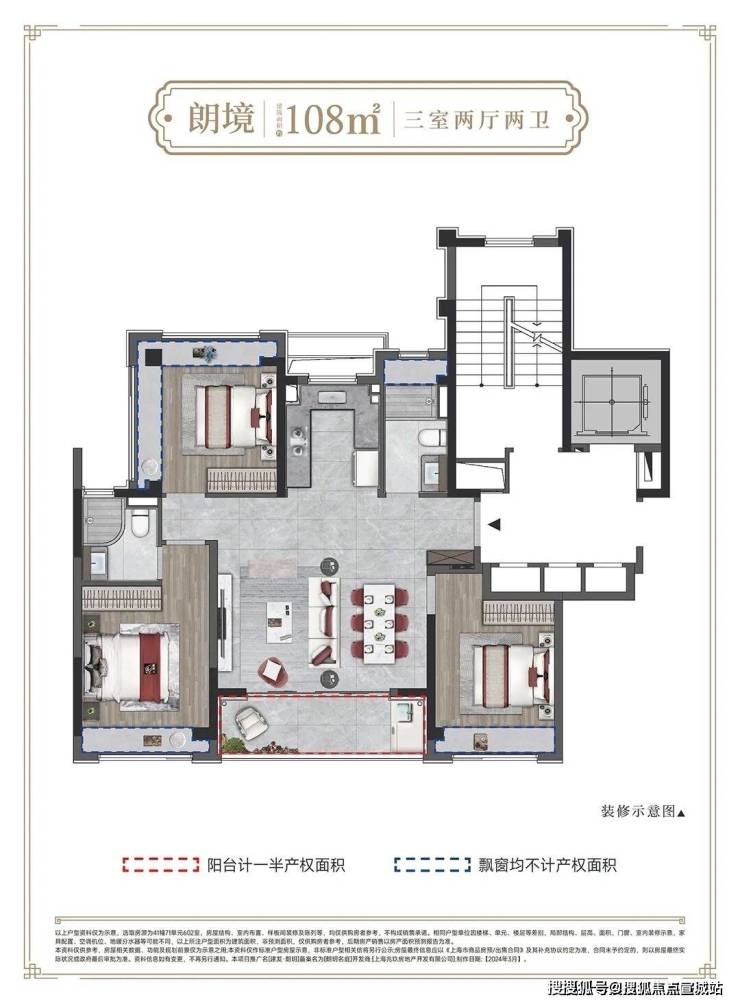 户型满足大面宽、短进深的要求,108、128平产品都做到四开间朝南。