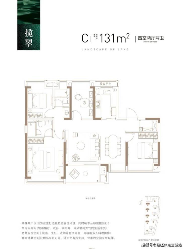 户型信息:主推 100-131㎡精装三至四房。其中,100㎡三房户型空间布局紧凑,功能分区明确,客厅与餐厅一体化,主卧为套房设计;131㎡四房户型四开间朝南,客厅和餐厅相连,主卧同样是套房设计,尽显舒适与尊贵。