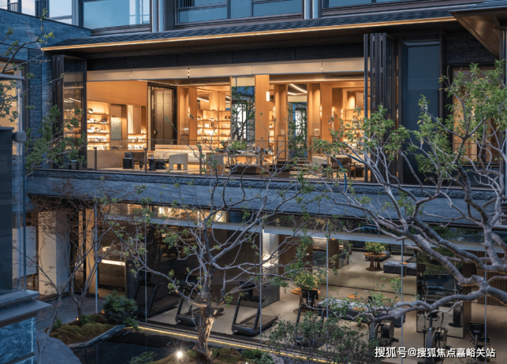 三面悬挑的玻璃结构凌驾于水景之上,既可俯瞰下沉庭院全景,又成为景观的一部分。
