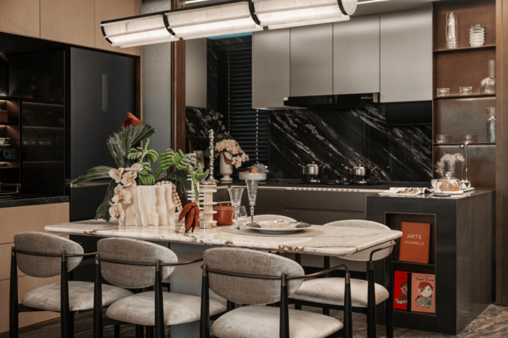 另外,翎翠滨江通过大量的奢石、隐藏式细节将整个室内打造成了艺术的殿堂。