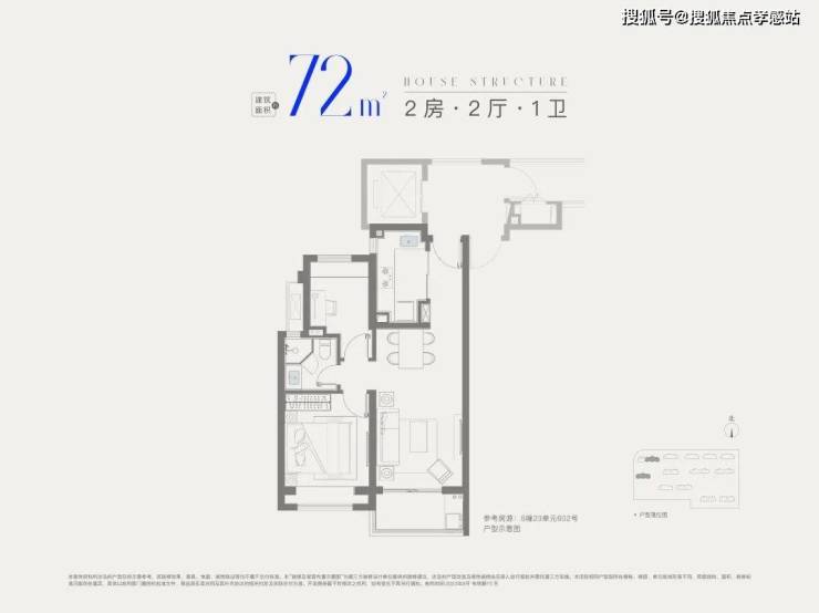 建面约72㎡2房1卫,做到双开间朝南+全卧室带飘窗,总价低至2字头,是刚需上车2房的优质之选。