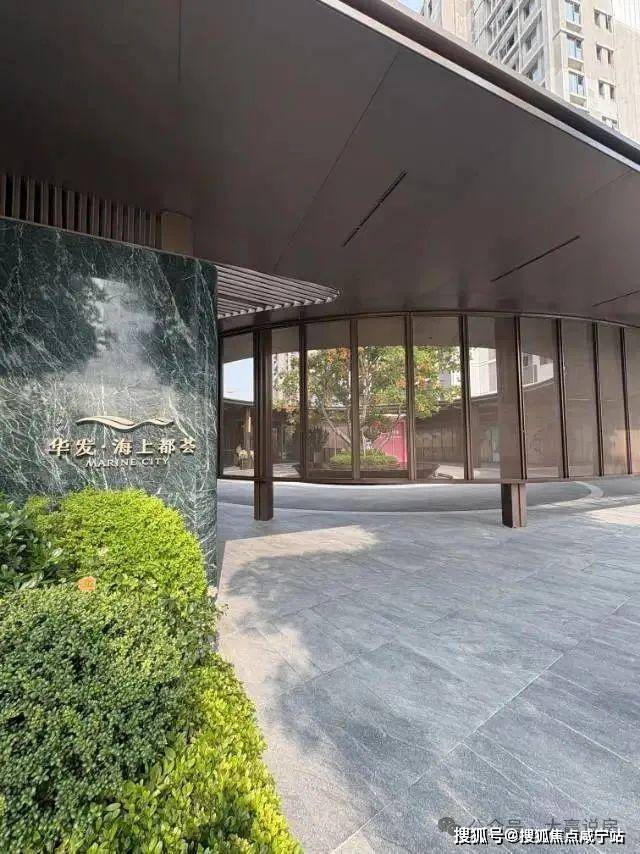 华发·海上都荟以现代简洁风格打造地标级建筑群,外立面采用浅色涂料与灰色涂料交织,局部融入石材与铝板材质,既轻盈又不失质感。门头设计尤为亮眼,石材与金属线条的搭配,彰显归家仪式感。这一设计不仅呼应松江新城国际化定位,更以简约线条勾勒出未来城市的新轮廓。