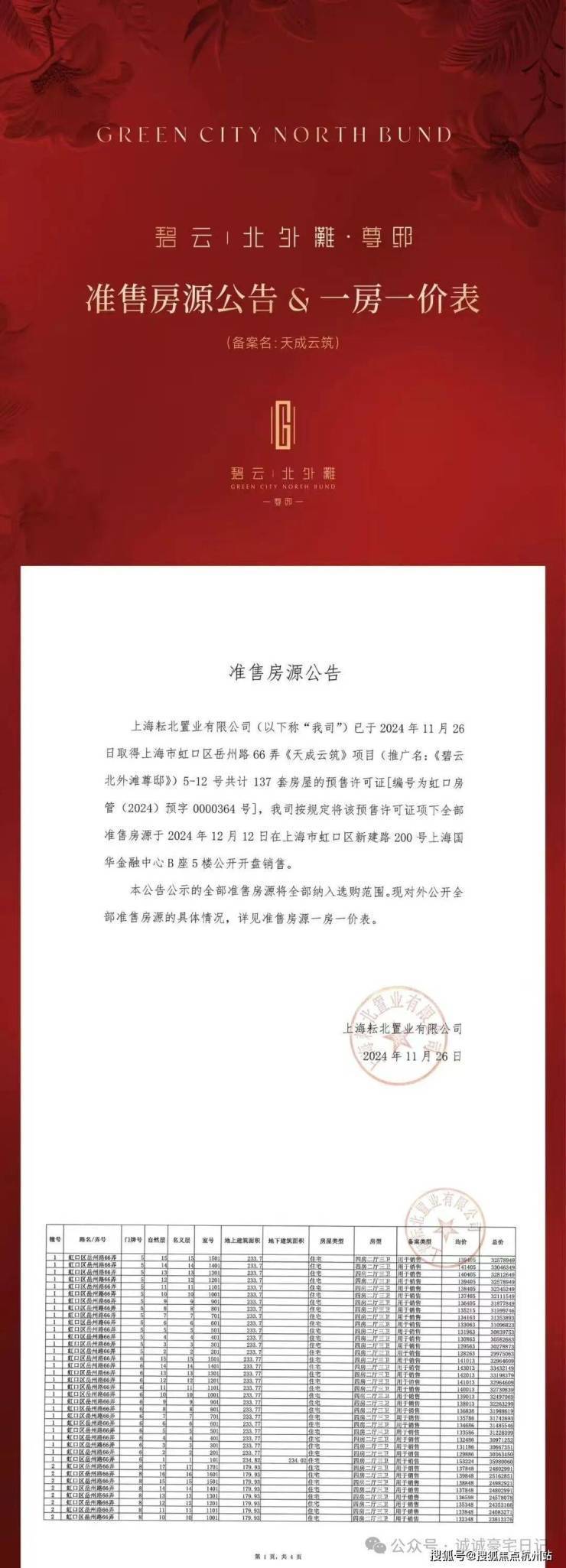 最新消息:碧云北外滩尊邸还有少量房源可直接定!位于5号楼楼王位置,建面约235㎡4房,总价约3000-3300万,特殊户型1楼复式(地上235㎡+地下235㎡/5.4米层高)总价3600万!