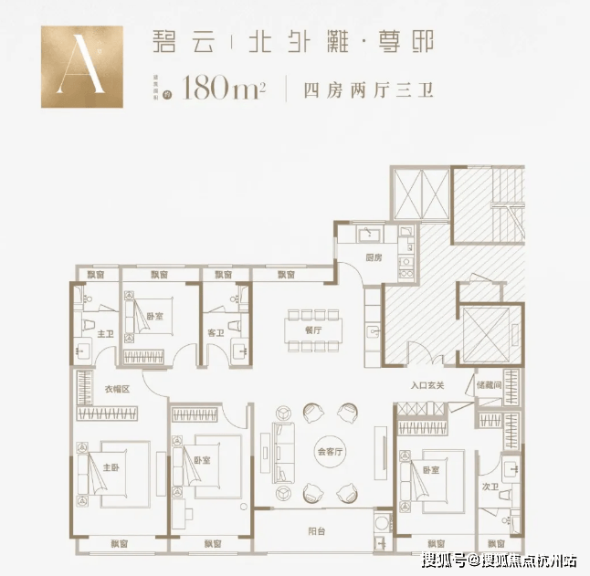 星级套房主卧,配备南北双飘窗+步入式衣帽间+独立卫浴,舒适度与私密性兼具!