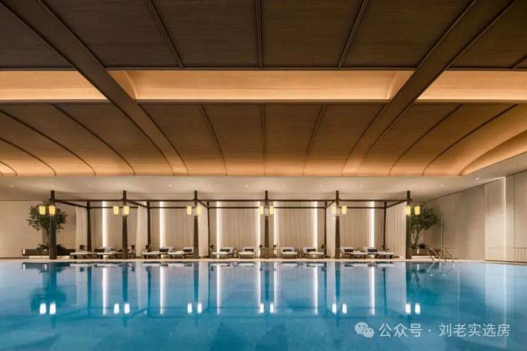 最让我心动的是这个无边泳池! 招商序以 “室内外自然无界”的设计手法,将无边泳池与庭院美景在视觉上连成一体,当阳光映照跃动的蔚蓝,业主畅游的同时还能包揽庭园诗意;深色木架构撑起白色帏幔,池边躺椅的设计也极具豪华酒店的优雅与尊贵,穹顶则延续着海派穹顶的经典设计元素,以细腻的木纹铝板打造。 以往只在奢华度假酒店的体验在家楼下的会所也能拥有!
