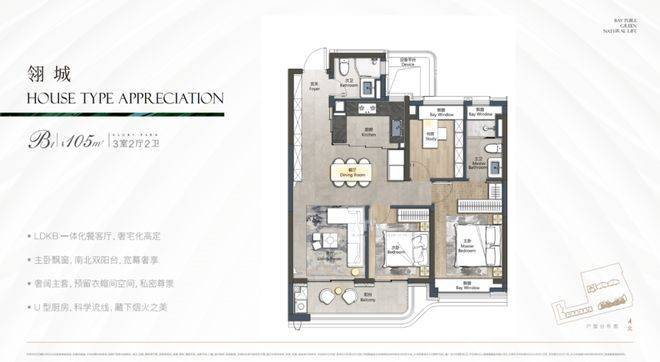先来看项目主推建面约105㎡3房2卫:✅✅翎翠滨江售楼处电话:400-8787-740✅✅