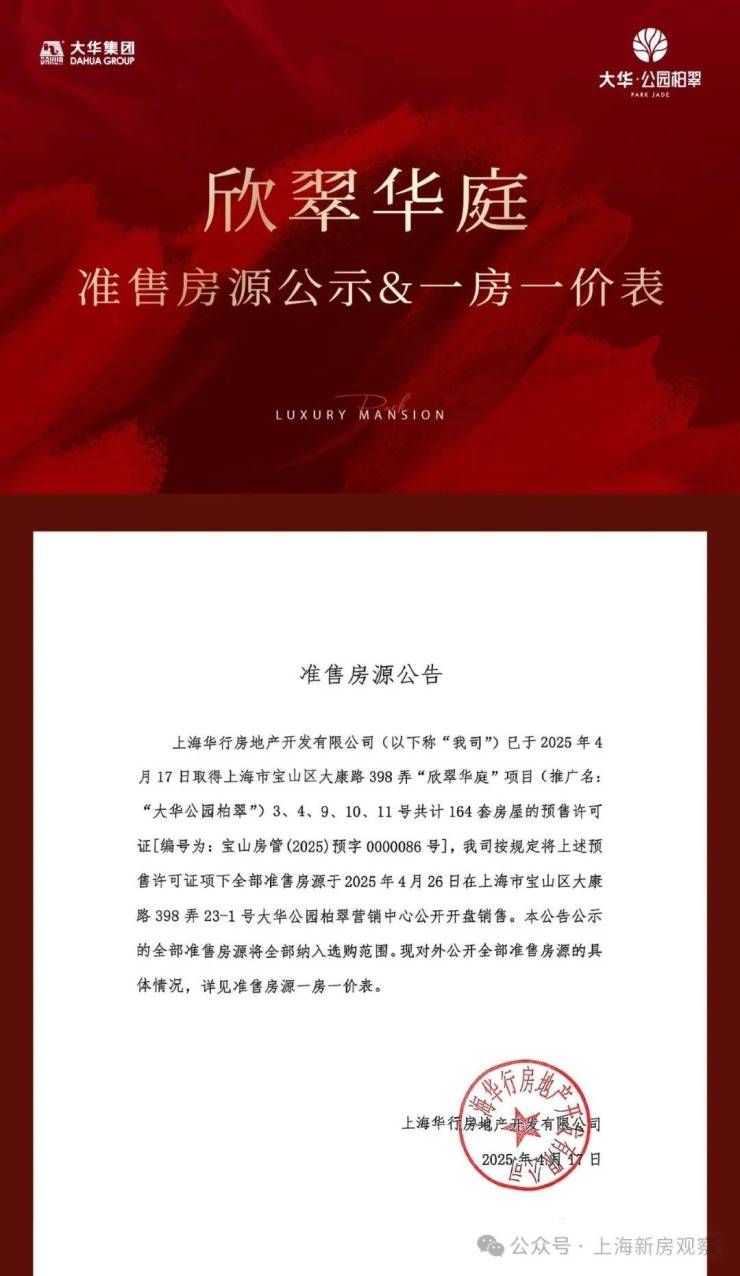 最新消息!静安中环旁巅峰作品「大华·公园柏翠」大宁之上 双轨交1/18号线!少量建面约101-142㎡3-4房;过会均价65327元/m²,总价520万起!124㎡户型已售罄;售楼处线上火热预约中!