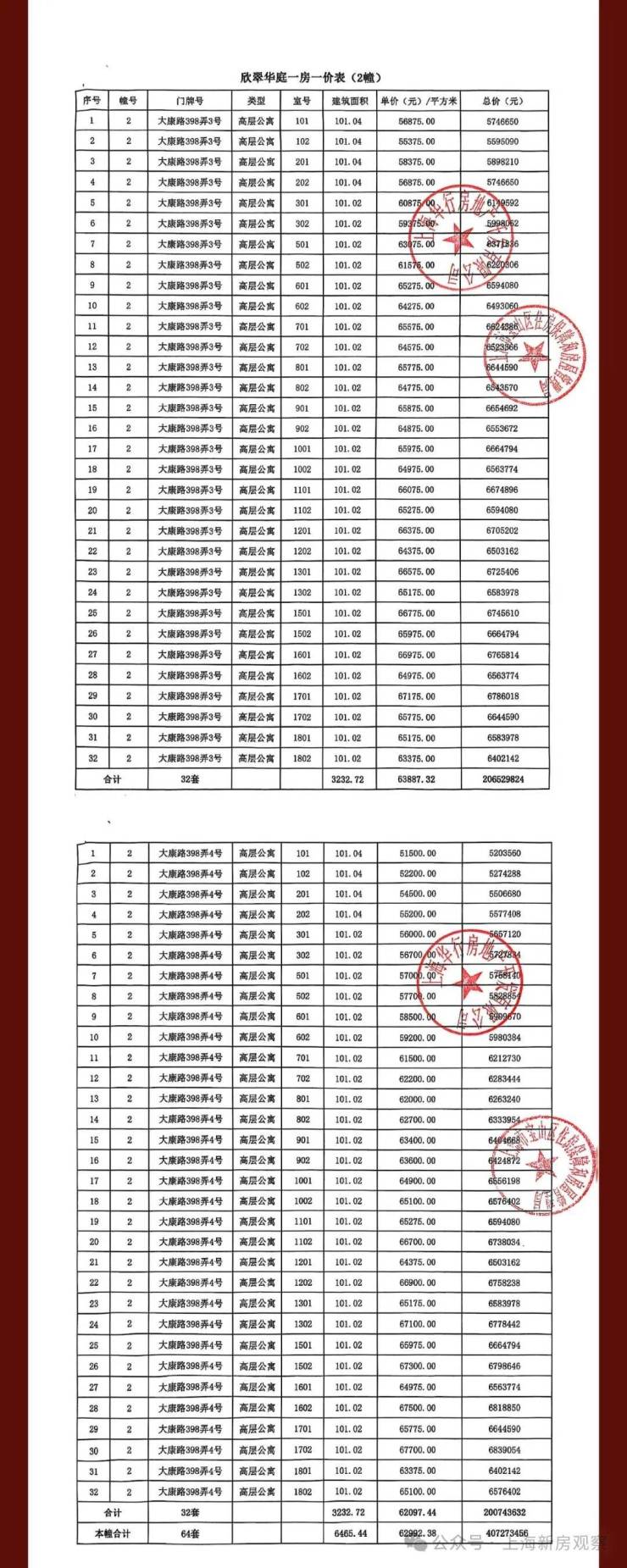 一房一价表如下: