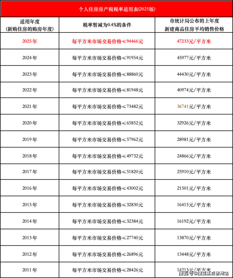 上海每年的个人住房房产税税率分界线,是根据上年度新房销售均价的2倍来计算,上海市统计局已经公布了2024年的新建住宅销售均价,为47223元/㎡。较2023年均价45977元/㎡上涨了约2.71%。