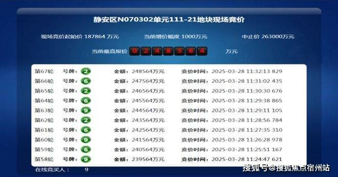 3月28日,上海2025年第三批次土拍,大华集团以总价24.85亿竞得静安大宁111-21地块,溢价率32.31%,折合楼板价92659元/㎡。装修标准不小于5000元/㎡。